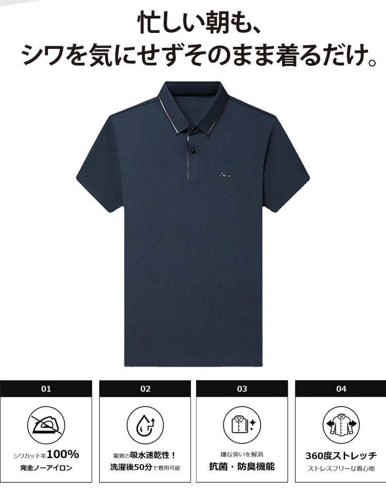メンズ折り襟シルクポロシャツ、通気性快適冷感メンズ半袖、夏用メンズ半袖